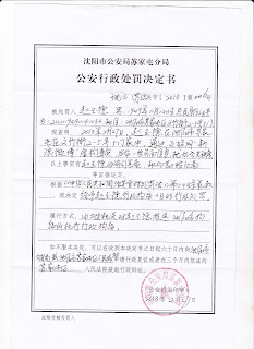 2013年3月1日上午,本网信息员接到赵玉德家人发来的邮件得知:赵玉德已于2月27日被苏家屯公安分局处以行政拘留10天。