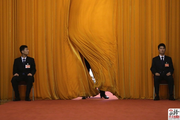- 3月7日,北京,全国人大会议召开,图为会场中坐着两名安保人员。