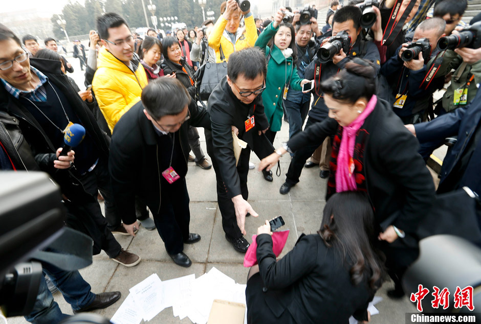 - 3月11日下午,全国政协十二届一次会议第四次全体会议在北京人民大会堂举行,成龙委员在人民大会堂门口搀扶被挤倒的女记者。
