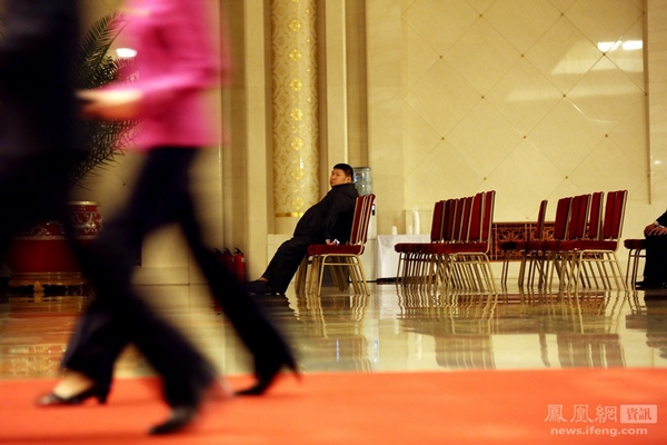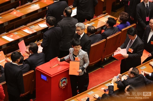 - 唱票期间,毛新宇坐在会场外的大厅内休息。