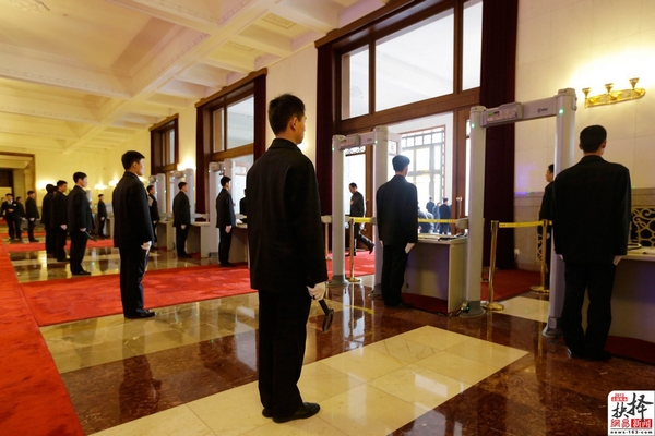 - 3月11日,全国两会召开期间,在北京人民大会堂东门,少数民族代表将头上的披风一挥,引数名摄影记者聚焦,快门声不断。