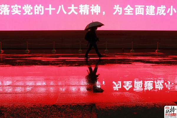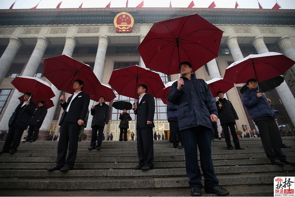 - 3月12日,北京,媒体记者冒雨参加政协闭幕报道。