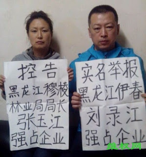 两人最后表示:因为两个家庭都是强权的受害者,所以在这里举牌示威,要求新的中共领导人能够依法惩治黑龙江地方政府的枉法官员,维护好宪法尊严,保护的公民权利与切身利益。