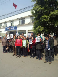 接出曾少梅后,这二十多名维权人士,一起来到非法拘留曾少梅的寿安镇派出所,并举标语“迫害妇女是孬种”以示抗议。