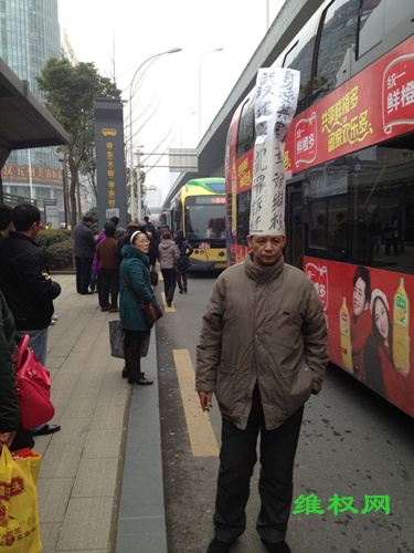 愤激之下,童斌颇具创意地给自己做个高帽,上书诉状或者政治诉求,外形颇像“济公”,游遍武汉三镇,无果,最后居然游到北京中南海附近,又被押回武汉并遭到殴打。大年初五,他又带病戴高帽逛庙会。