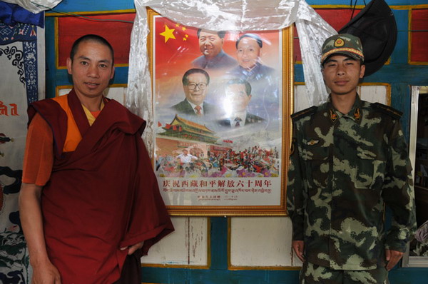 | 林芝地区江色寺驻寺民警。(图片转自西藏创先争优强基惠民活动办网站) |