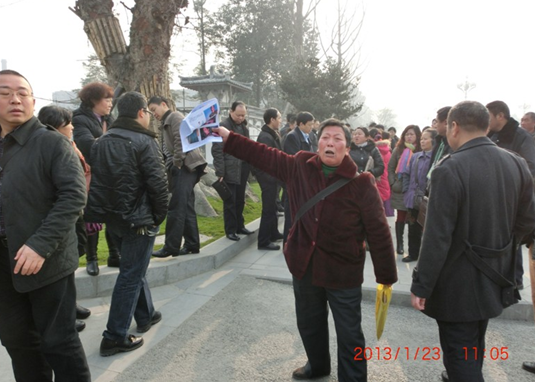 (维权网信息员陈华报道)2013年4月9曰下午2点过,成都锦江区访民辜素芳与访民周成群、李廷惠等人,到锦江公安分局柳江派出所,讨要因上访被警官钟利军抢走的物品,钟利军态度蛮横的说:“这些物品沒有在我这里,在徐海波(曾经把辜素芳打得遍体鳞伤的警察 )那里。”随后,将辜淑芳推出派出所大门,并关上了大门。