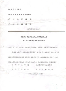2、国家人力资源和社会保障部、民政部、财政部颁发的“人社部发(2008)42号文件”以及浙江省、杭州市转发该文件的通知。