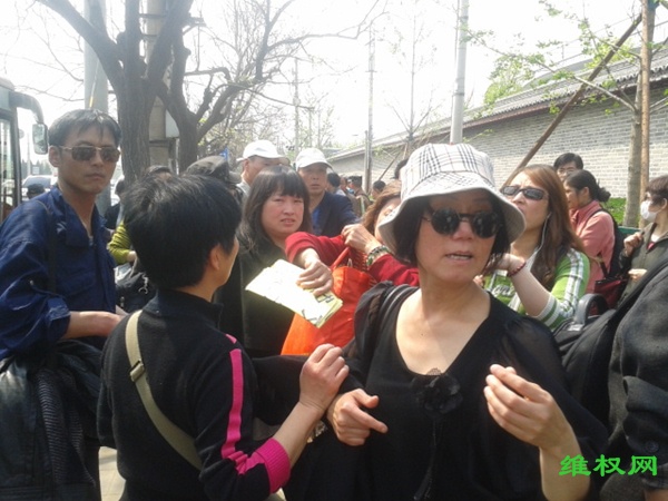 据了解,现场有近两千名上海维权访民。上访维权人士表示,如果是下午1点30分以前进到“三骗”胡同里面,就很难自由的走出来,特别是上海,有专车等候着将上海的上访维权人士送往久敬庄。在现场,有十多名各地的蒙冤警察也前来参加维权活动。由于怕被抓回当地失去人身自由,还有很多访民远远的站在一边观望。在信访办里外不时发生冲突,众多的上访维权者被强行押上大公交车往久敬庄送。