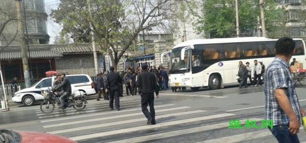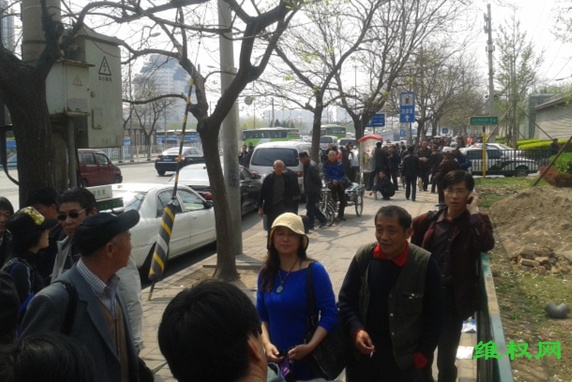 (维权网信息员唐韵报道)4月26日是上访维权人士的公民维权日,来自全国各地的三千余位维权访民把国务院信访办、全国人大信访办和中纪委信访办(被上访人称为三骗胡同)围得水泄不通。不少便衣混进访民当中实施时时监控。二十多辆警车停在马路两侧,十多辆大公交车随时准备把维权访民送往久敬庄。