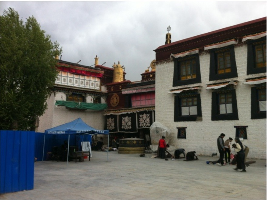 | 饱经沧桑的大昭寺前,没有了从边远的康和安多磕着长头到拉萨的朝圣者,因为他们没有“进藏许可证明”,被设在朝圣路上的检查站拦住了。 |