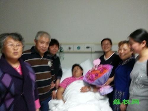 (维权网信息员张宁宁报道)5月11日,常州市张慧玲、万黛娟、如皋冯兰美、储开宏和济南倪文华以及南通张亮、单丽华、姜桂芳等人,到南通市中医院看望正输氧气治疗的丁玉芳。