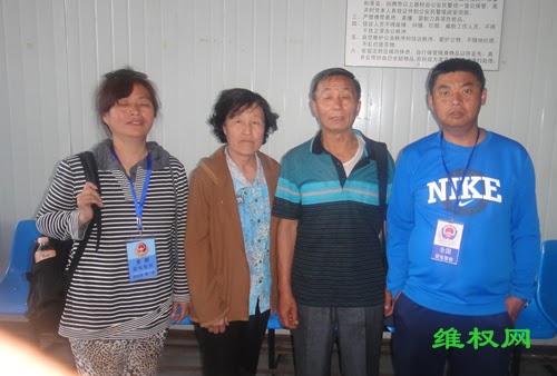据了解,四名上访维权人士分别是来自辽宁沈阳的蒙冤警察马治国,来自湖北的女蒙冤警察黄玲,以及来自辽宁抚顺维权人士葛利元和辽宁沈阳 王志民 女士。四名上访维权人士为了表达与贪腐败现象做斗争决心在久敬庄合影留念,并表示,不管面对什么样的打压,会依法维权到底。
