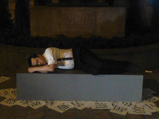最初以為是保安員這麼不敬業睡在這裡了!故意拍下罪證,開場才發現原來他就是演員!