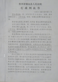2012年12月6日谭其林一纸诉状,将镇远县国土局告上法庭,镇远法院经过审理,作出上述判决,但国土局还是拒不履行法院的判决。