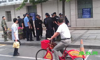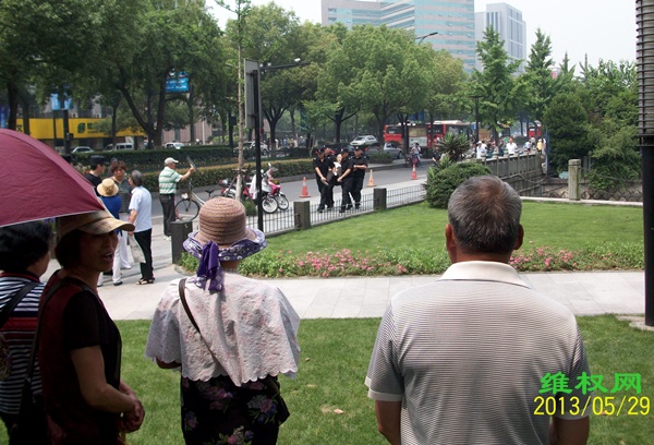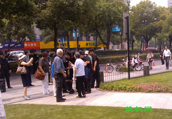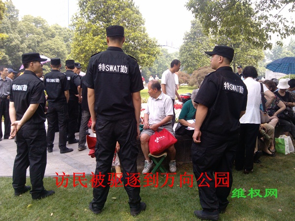 (维权网信息员潘高锋报道)多年来,杭州访民每个星期三都到市政府门前集会请愿,尽管每次都被警察驱散,但他们从不退缩,风雨无阻,这已成惯例。