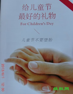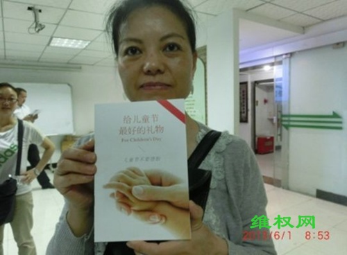 (维权网信息员陈华报道)“六.一”儿童节,成都秋雨之福教会“儿童节反堕胎”小组的20多位义工,在成都各妇幼医院向市民赠送《给儿童节最好的礼物——儿童节不要堕胎》宣传小册子。钟标广弟兄、石成玉姊妹以及川大的一个姊妹,在八宝街九龙医院赠送小册子的时候,被医院非法扣留,后被带往新华西路派出所。下午两点钟,一行人才被允许离开派出所。