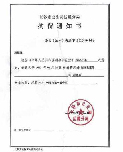 (维权网信息员李军报道)本网此前报道,长沙维权人士浣铁军自2013年6月1日起被警方带走下落不明。6月5日,本网信息员经过多方了解后获知,浣铁军已于6月2日被长沙市公安局岳麓分局以敲诈勒索罪刑事拘留,关押在长沙市第一看守所。