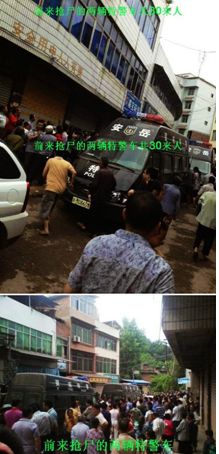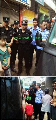当刘宇的尸体被抢走后,2车特警暴打刘宇的父亲和无辜的围观群众,另外一些手无寸铁的农民愤怒了,自发把打人的特警的车辆围了起来,让他们交出打人的人。