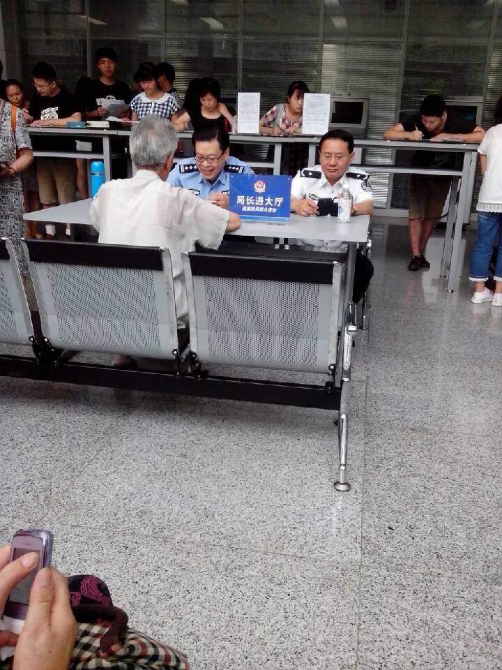 (维权网信息员李燕报道) 2013年6月18日上午,又是成都市公安局长进大厅的日子。成都市维权人员李廷惠、周成群、陈伦珍、唐德英、辜素芳、吴明仁、金丽香等人,再次来到成都市人民南路2号签证大厅排号等德公安局蒙超局長第二次接待,几位维权人员再次反映相关事宜及诉求,“局长”一本正经的听取了他们的情况,但未作任何答复和承诺。