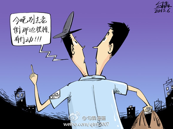 6月15日,一名网友发帖爆料,武汉市洪山区城管局的一名城管员,白天作为执法者在街道巡逻、检查,晚上则化身小贩,在路边摆摊。帖子同时上传了这名工作人员在执法和在摆摊的对比照片。6月16日,武汉市城市管理委员会官方微博证实,的确有两名正式工作人员在夜晚摆摊,次日官方举行新闻发布会宣布,这两名城管工作人员是在进行体验,以换位思考,同时还公布了这两名工作人员记录的33天的摆摊日记。面对这两名城管工作人员的特殊身份,卧底、潜伏、无间道等字眼在网络层出不穷。虽然官方不断强调这是在以“换位思考”方式提高城市管理经验,但不少网友并不买账,一名网友贴出一张武汉城管以往的新闻合辑,以此说明武汉城管早有许多“作秀”先例,还有网友从摆摊日记入手,试图分析所谓日记实际有造假之嫌疑。另有网友则强调,令城管与小贩都感到纠结无奈的城市管理制度确实应当做出反思与改变。倘若武汉城管只是想借助这一次的“卧底执法”改善形象的话,从网友不绝的质疑与调侃声中,其收获的效果着实有限。