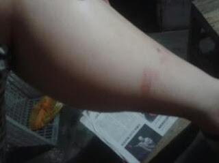 6月20日下午,马渚镇镇长、菁江渡村村长、包工头韩建丰等人带着几百个协警、协管来到被征用的耕地上强行铺石子。村民去阻止,几百个协警、协管就强拖、殴打村民,村民要拍照,他们就强夺手机,摔到地上。