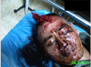 (维权网信息员陈华报道)本网28日报道四川省郫县团结镇石堤村村民为维护合法权益被黑社会暴打住院(成都市郫县黑社会张狂,又一村民头被打住进医院(图)http://wqw2010.blogspot.com/2013/06/blog-post_8394.html)后,29日凌晨1点多,家住郫县三道堰镇程家船村14组60多岁的邱从国,也遭到灭顶之灾:因不同意不合理的房屋拆迁,在自家门前被三个不明身份人员残暴地打倒在血泊中。目前伤者入郫县中医院治疗,没任何人宣布对此事负责,医疗费也是伤者家人自己承担。