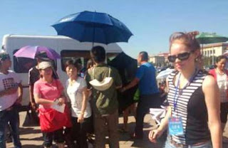 7月4日,维权户杨云彪,汤柳叶,王群兰,凤雅,倪彩芬,沈志华,李青,成菊英等浙江人,在天安广场喊冤,被警察强行押上警车带走。