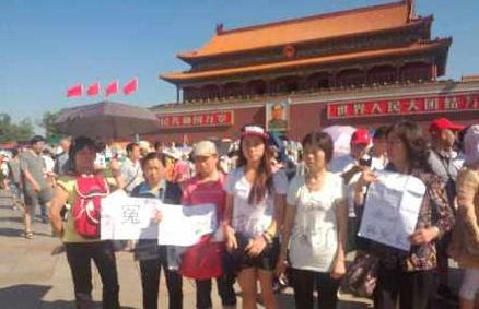 7月5日,有多位杭州访民在北京天安门找中央领导举报杭州市政府,被公安强行推上警车送往天安门公安分局。