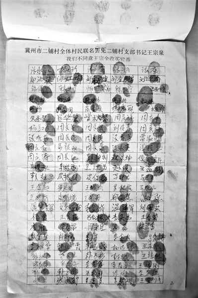- 7月11日,冀州市二铺村村民联名抵制村支书王宗泉收买瓷器。
