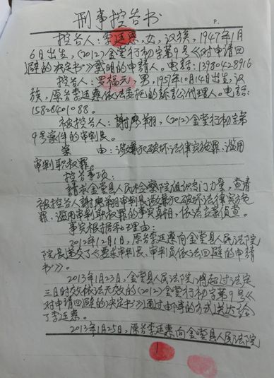 (维权网信息员陈华报道)公民代理人罗福元在7月11日代理李廷惠行政赔偿案时,被四川省金堂县法院审判长谢廖翔驱赶出法庭。随即,罗福元及当事人李廷惠向金堂县检察院提出刑事控告书,控告审判长谢廖翔犯破坏法律实施罪、滥用审判职权罪。