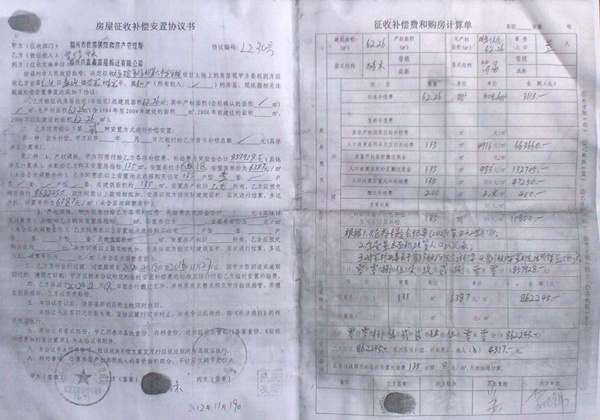 2012年10月15日,林东龙和林恩带着6万元现金到林**家3楼,经林恩亲手验证6万元足数现金交到林**手中。果不其然在2012年11月19日,林东龙弟媳曾珍妹就和东部新城拆迁办正式签订了拆迁协议,落实了135平米安置房。但一万元拆迁补助款却迟迟不予兑现,经多次询问林**,最后才说出申请报告被纪委书记石贤颜撕了,不让给,以至于林东龙才会去质问石贤颜书记。