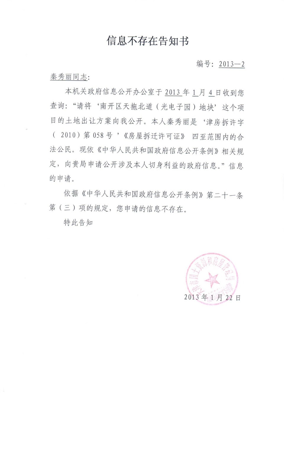 2013年6月20日她们又向天津市公安局邮寄了“督促立案侦查申请书”,但至今还是没有任何答复。