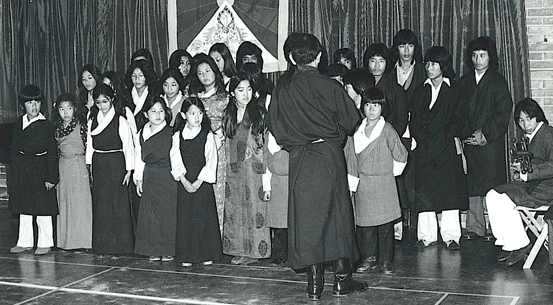 然扎仁波切带领孩子们演唱图伯特歌曲。