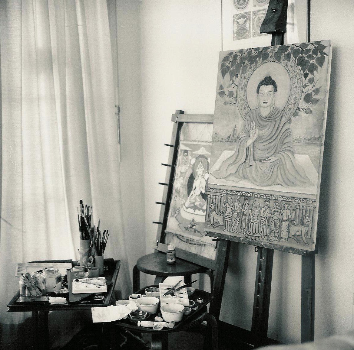 然扎仁波切的画室。摄影:Manuel Bauer