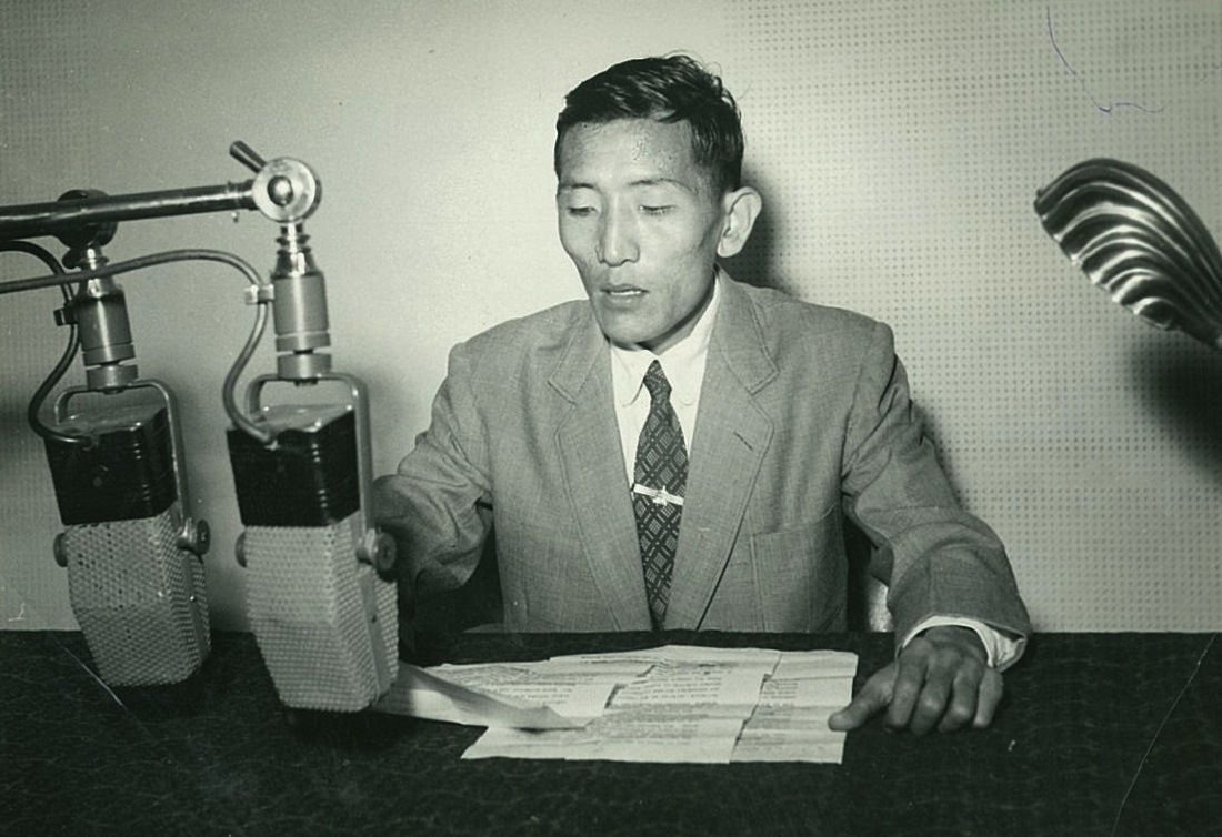 然扎仁波切担任全印广播公司(AIR)新闻播音员。大约摄于1959年。