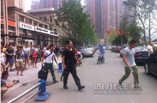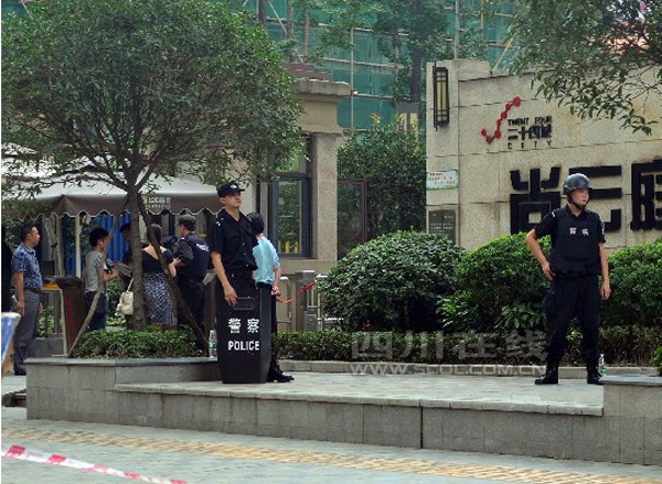 四川,中国——7月31日,《成都商报》报道称,成都成华区,二十四城二期17栋,20分钟前,楼上有数声枪声。警匪枪战,目前,2名开枪疑犯已经被警方制服,在此过程中有警察受伤。目击者称还有一名疑犯在逃,刚才该疑犯从楼上向跳下平台,特警正呼叫增援。目前,该楼的居民还没疏散完,警方动用了催泪瓦斯和盾牌,情况相当危机。