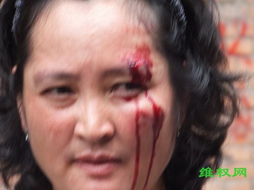据当地村民说:一名旁观者张桂花为取证,掏出手机准备拍照时,被女警察邓英上前抢走手机(至今未归还),随后邻居张桂花又从挎包里掏出手机准备继续拍,警察邓英发疯似的冲上来抢张桂花的手机,在场的5个警察直接参与配合邓英抢走手机,邓英仰仗人多势众抓起啤酒易拉罐砸向张桂花,将张桂花的额头打出一个大口子,脸部打肿,当场流血不止,到医院缝合了三针。
