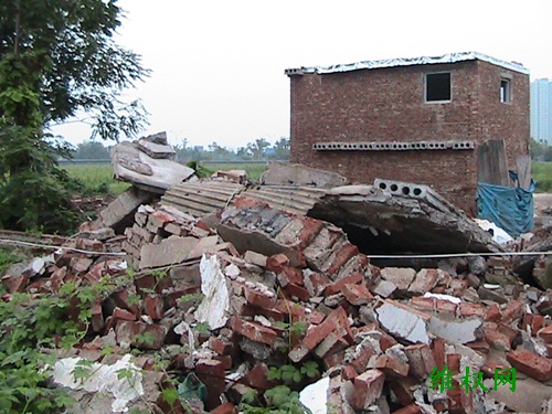 陈志强一家人被释放回到自己的合法住宅后,只见两层楼房已经被夷为平地,所有家具包括电脑、电视机以及孩子学摄影用的高级照相机等器材,连身上穿的衣物都没带出一件,尽被掩埋在废墟之下。