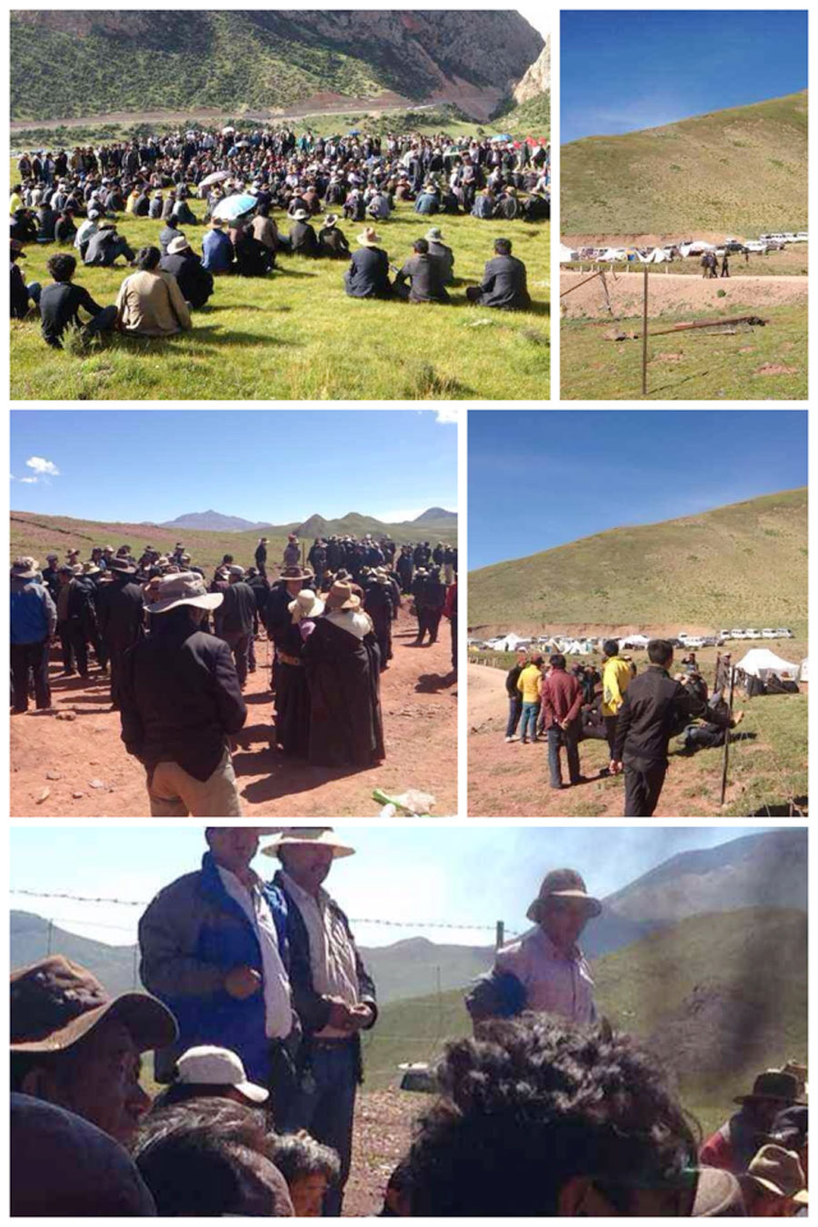 综合诸多报道,8月13日起,鉴于数百名开矿工人抵达青海省玉树藏族自治州杂多县(属传统康区)的三个乡:阿多乡、扎青乡、萨呼腾镇(原名结扎乡,是县府驻地),欲大规模开矿之际,三个乡的藏人民众三千多人,发出“齐心协力,誓死护土,绝不允许开采一块矿物”的口号,在被划为矿区的神山周围静坐抗议。