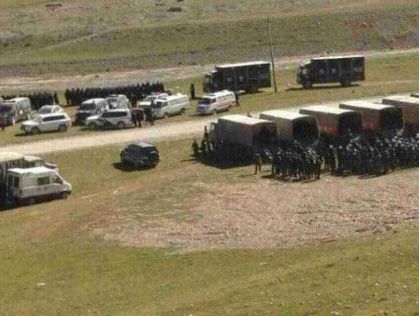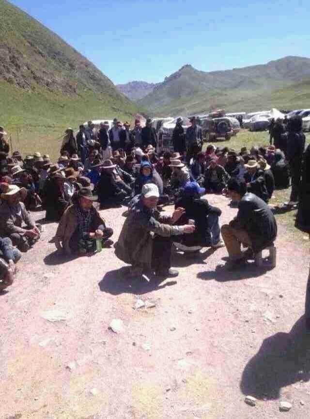 他们来的目的就是要让,正在抗议挖矿,抗议破坏三江源自然保护区生态环境的杂多民众,服软!