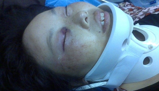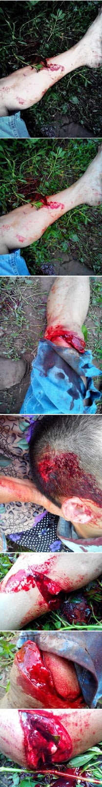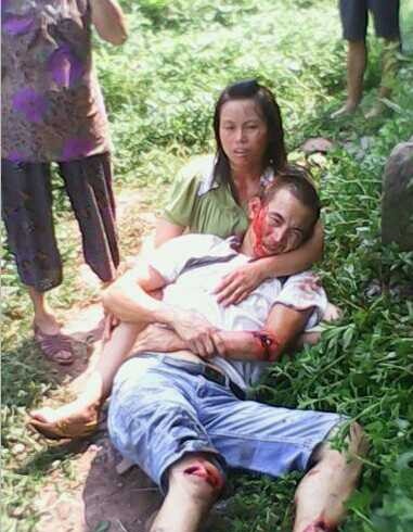 就在我们夫妻俩刚上车准备驾车时,从我们车旁边大约50米的三辆白色驾车中突然跳出20几个人拿着砍刀,大约3尺长,还有1米左右的棍棒,还有些其它人插在背上有凶器的人,冲到我们车门前,把我们夫妻俩拖出来,抢走了我们的车钥匙并扭断,把我的手机当场抢走,我(唐晴)当时被一名穿黑色T恤的青年男子拿着棍棒把我按倒在地上并开始打我,我拼命求他不要打,我只需要合理的解决,于是他放了我,其它的20几名青年男子拿着砍刀和棍棒公民追打我丈夫,我找到我丈夫的电话准备报警时,他们把我丈夫的手机也抢去了,于是我拼命跑向丈夫想向前阻止,就在这时,另一名青年男子把我按倒在地,当时在拼命逃命的丈夫爬上了领居李玉碧家的平房顶上,可是追杀他的二十多名男子并没有善罢干休,其中的另外几个青年也上了房顶,就在这时,老公为了又一次逃命,于是爬上了李玉碧家隔壁家蒲永全家的瓦屋顶上,那二十几名青年男子还是不放过我丈夫,他们开始拿起了砖头,瓦块之类的东西砸向我丈夫,不到一会儿,老公的头被砖头砸了一个大洞,鲜血直流,就在这时,房顶上的青年男子并没了就此罢休,拿着砍刀,棍棒便冲了过去,把我丈夫的手脚全砍断了,并从房顶上推到了地上,骨头当场全裸露在外面,他们已经都打成这样子了,这时,还有几名男子拿着棍棒继续打我丈夫,于是我拼命扑在我丈夫身上,求他们不要打,放过我丈夫一命,他们这才拿着砍刀,棍棒驾车离去。