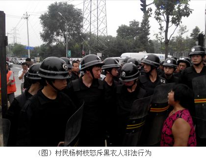 韩颖报警后,警察到达现场,但是对现场违法犯罪的黑衣人没有查处,对他们随意设置警戒线、持有警械未作出任何反应。有现场维权人士判断,这是典型的警匪勾结,祸害民众的非法行为,警察和黑衣人早已达成默契;派出所长是犯罪现场指挥者之一,出警的警察仅仅是走个过场而已。