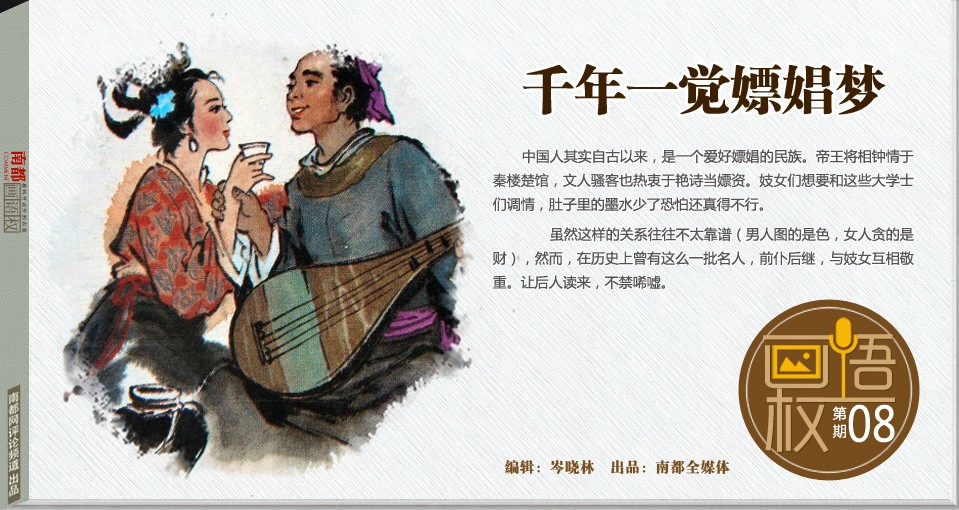 南都网列举出古代文人骚客和帝王将相的风流韵事,以证明“在历史上曾有这么一批名人,前仆后继,与妓女互相敬重”。