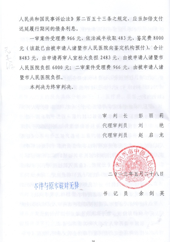出于对前妻的信任,宣松火于2012年1月12日出具了委托李小萍全权处理医疗纠纷上访事宜的委托书。2012年11月27日,浙江省高级法院接受了李小萍的申诉,作出了(2012)浙民申字第1281号民事裁定,指令绍兴市中级法院再审。