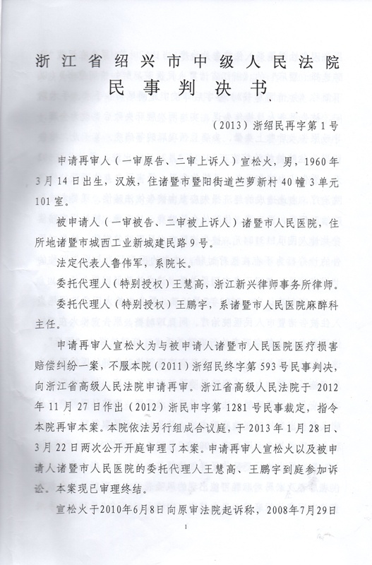 相关报道请见:浙江医疗事故受害人宣松火致中国政府及国际社会的申诉状