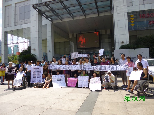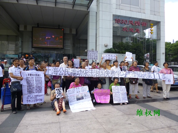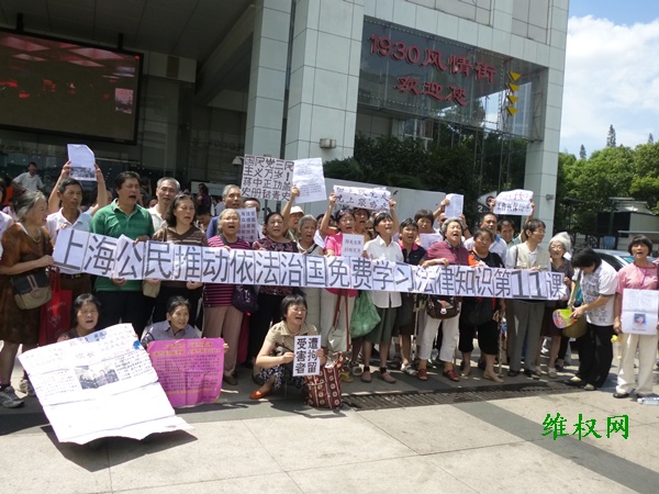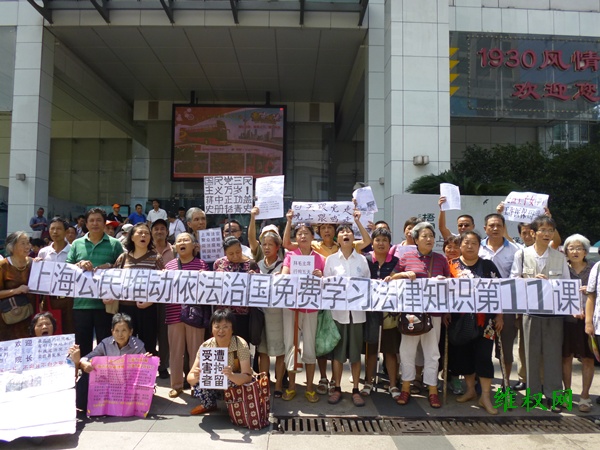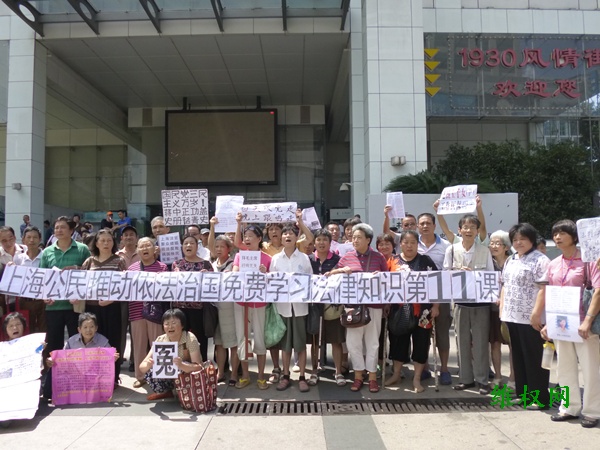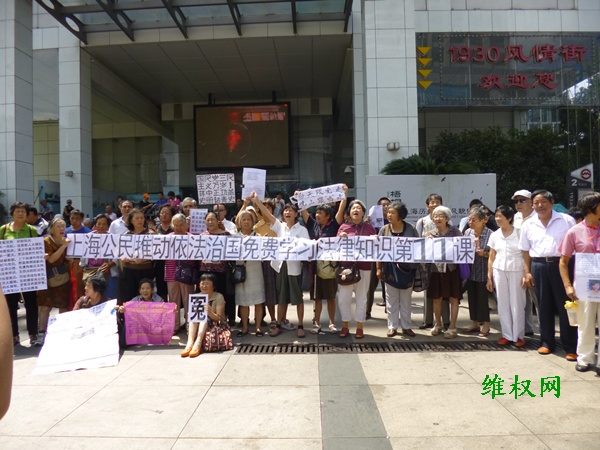 具体社会责任感的上海民众立即拉起《上海公民推动依法治国免费学习法律知识第11课》和《国民党三民主义万岁!蒋中正功盖史册铭青史》、 《上海法官聚众嫖娼、司法腐败、误国殃民、冤案一堆》、《白天跟党走,晚上跟‘鸡’走》等横幅标语以示抗议。