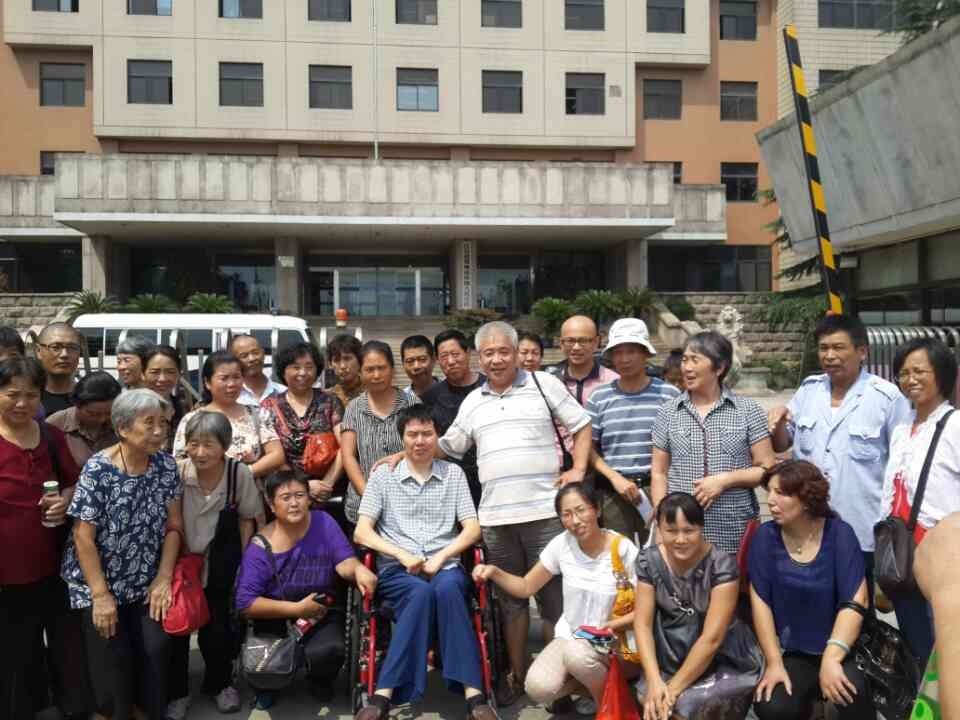 各地赶来旁听的维权人士敬仰张建平的维权精神,不顾烈日暴晒,一直在法院外等候到听证会结束,已是12点半了。大家一起与张建平一起拍照留念。