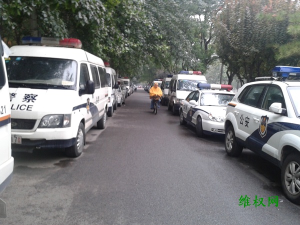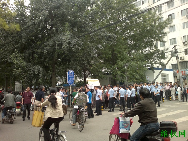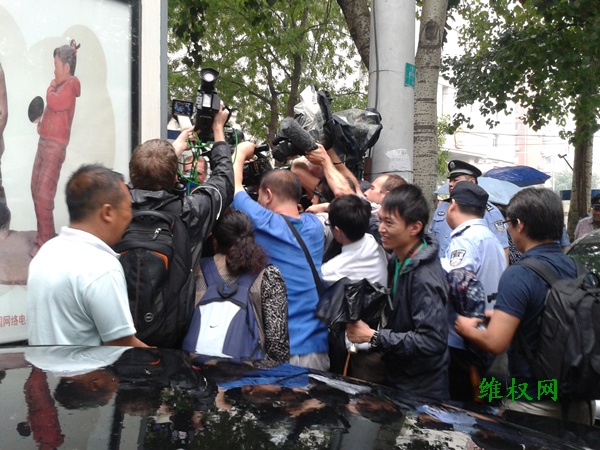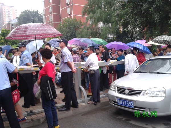 一大早,声援、围观冀中兴案开庭的各地维权人士及访民被一百多名警察和无数的便衣控制在法院的大门口。尽管如此,“冀中兴无罪,一个冀中兴倒下去,无数个冀中兴站起来”等口号还是此起彼伏。