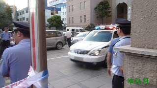 (维权网信息员方子林报道)9月17日下午2点,上海维权人士魏勤、王扣玛“寻衅滋事”案在闸北区法院104法庭审理。冯正虎、毛菊华、陆瑛、陆福忠等数百名上海维权人士及民众要求旁听被拒,要求参加旁听的国外使馆官员及记者遭到警察的驱赶,只有当事人的两名家属允许参加旁听。